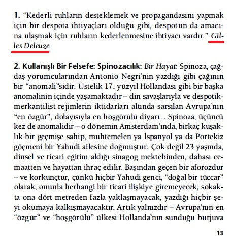 İnci Uysal’ın çevirmenliğini üstlendiği, redaksiyonunu Ulus Baker’in yaptığı Gilles Deleuze’un (Norgunk Yayıncılık. 2002. Sf: 154)