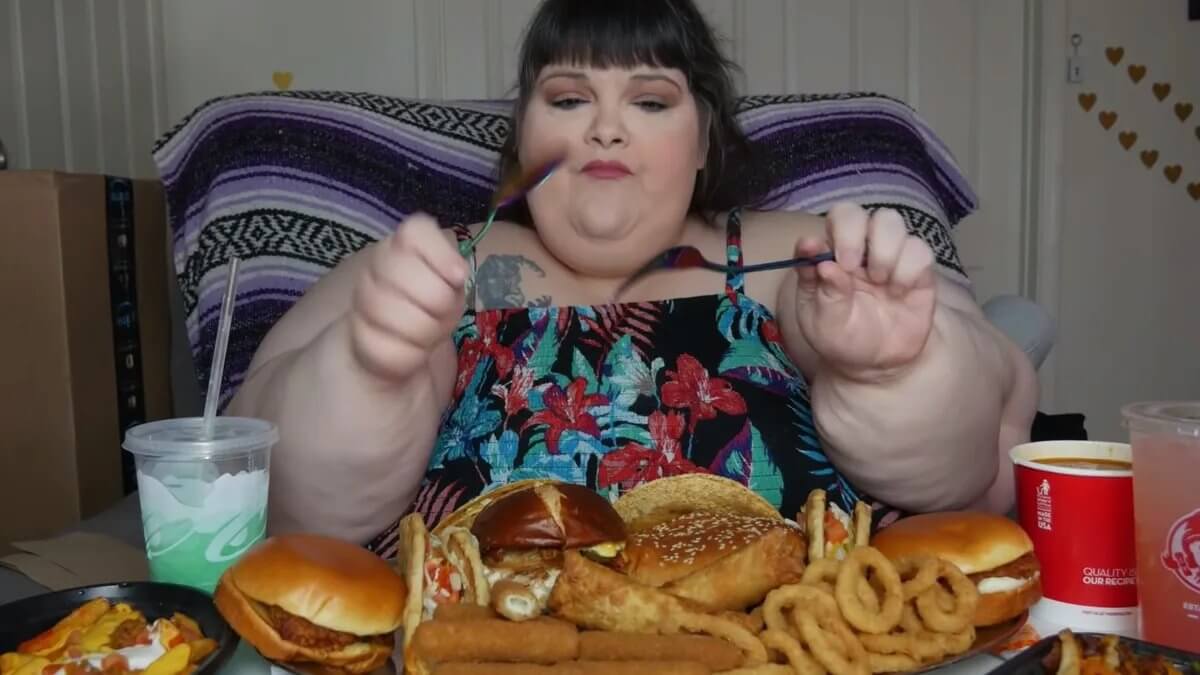 2022 ibaresini taşıyan videodaki kilolu kadın Hungry Fatchick mahlasını kullanıyor.