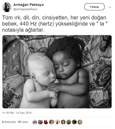 “Dünyada bütün yeni doğan bebekler, 440 Hz yüksekliğinde ve “La” notasıyla ağlar! 🎵”
