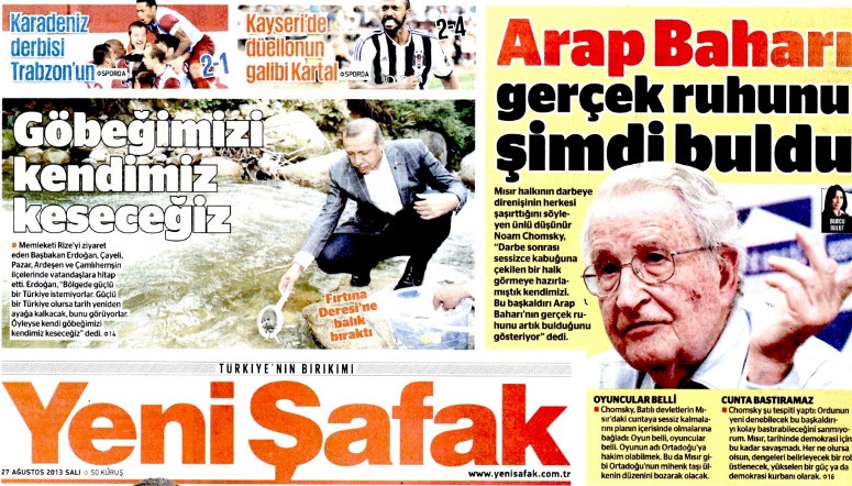 Yeni Şafak Gazetesinde 27 Ağustos 2013 tarihinde yayımlanan “Arap Baharı gerçek ruhunu şimdi buldu” başlıklı Noam Chomsky söyleşisi