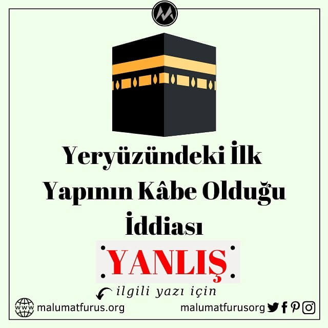 Yeryüzündeki ilk binanın İslam dininin kutsal mabedi olan Kâbe’nin mevcut hâli olduğu iddia edilse de, bu iddianın doğruluk payı bulunmamaktadır. İslâm inanışına göre yeryüzünde yapılan ilk mâbed olan Kâbe’nin mevcut hâli dünyanın en eski yapısı değildir. İslâmi kaynaklar, Kâbe’nin Hz. İbrâhim’den önce de var olduğunu, ancak yıkılıp uzun zaman içinde yerinin kaybolduğunu ve Hz. İbrâhim tarafından bulunarak yeniden yapıldığını belirtmektedir. Günümüze kadar ulaşan, yıkılıp yeniden inşa edilmemiş dünyanın en eski yapıları ise M.Ö. 12.000-8.400 yıl önce inşa edildiği düşünülen Şanlıurfa Göbeklitepe’deki kalıntılardır.