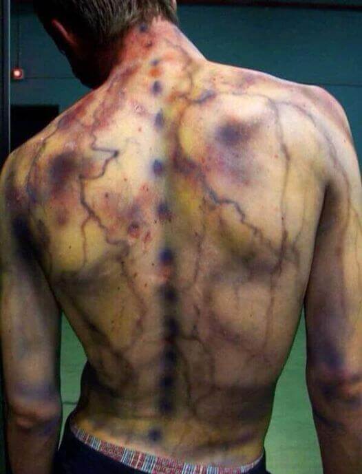 Fotoğraftaki insanın sırtındaki izler yıldırım çarpması sonucu oluşmamış.