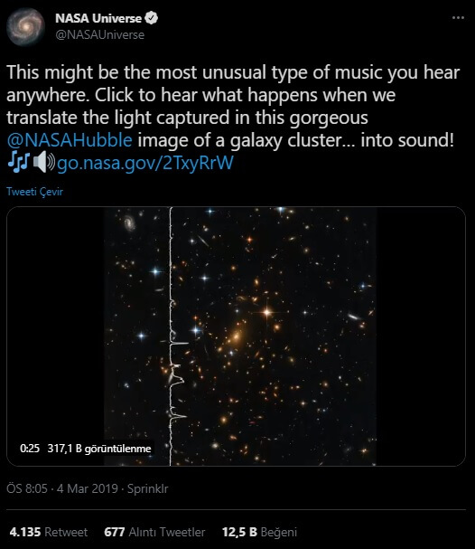 NASA’nın sosyal medya hesaplarından konu ile ilgili yapılan paylaşımda “bu, muhtemelen şimdiye kadar duyduğunuz en sıra dışı müzik türü” ifadesi kullanılmıştı.