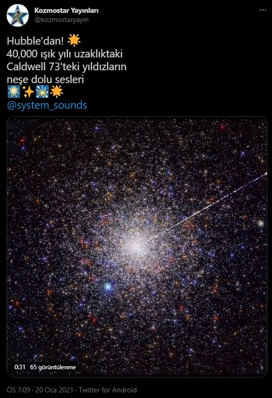 Hubble uzay istasyonu yıldızların çıkardığı sesleri kayıt etti”Hubble Uzay Teleskobu tarafından kaydedilen yıldızların görüntüleri ve sesleri“, “Hubble’dan! 40,000 ışık yılı uzaklıktaki Caldwell 73’teki yıldızların neşe dolu sesleri“, “NASA’nın yayınladığı ‘evrenin sesi‘” gibi açıklamalarla bu iddiayı içeren örnek bazı paylaşımlar şu şekilde sunulabilir: