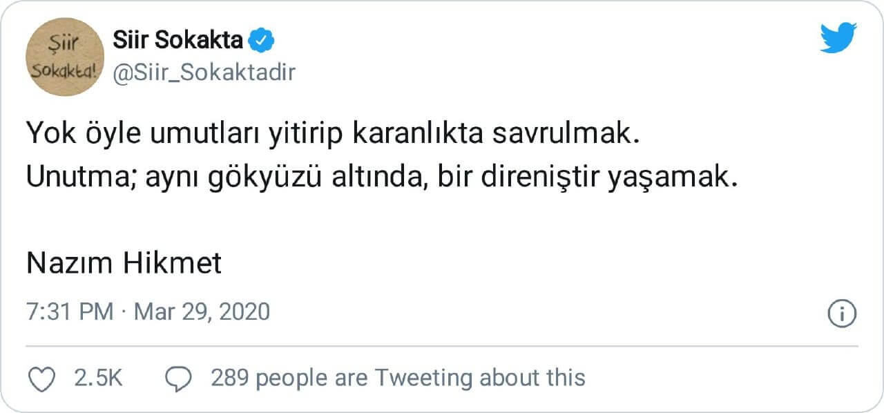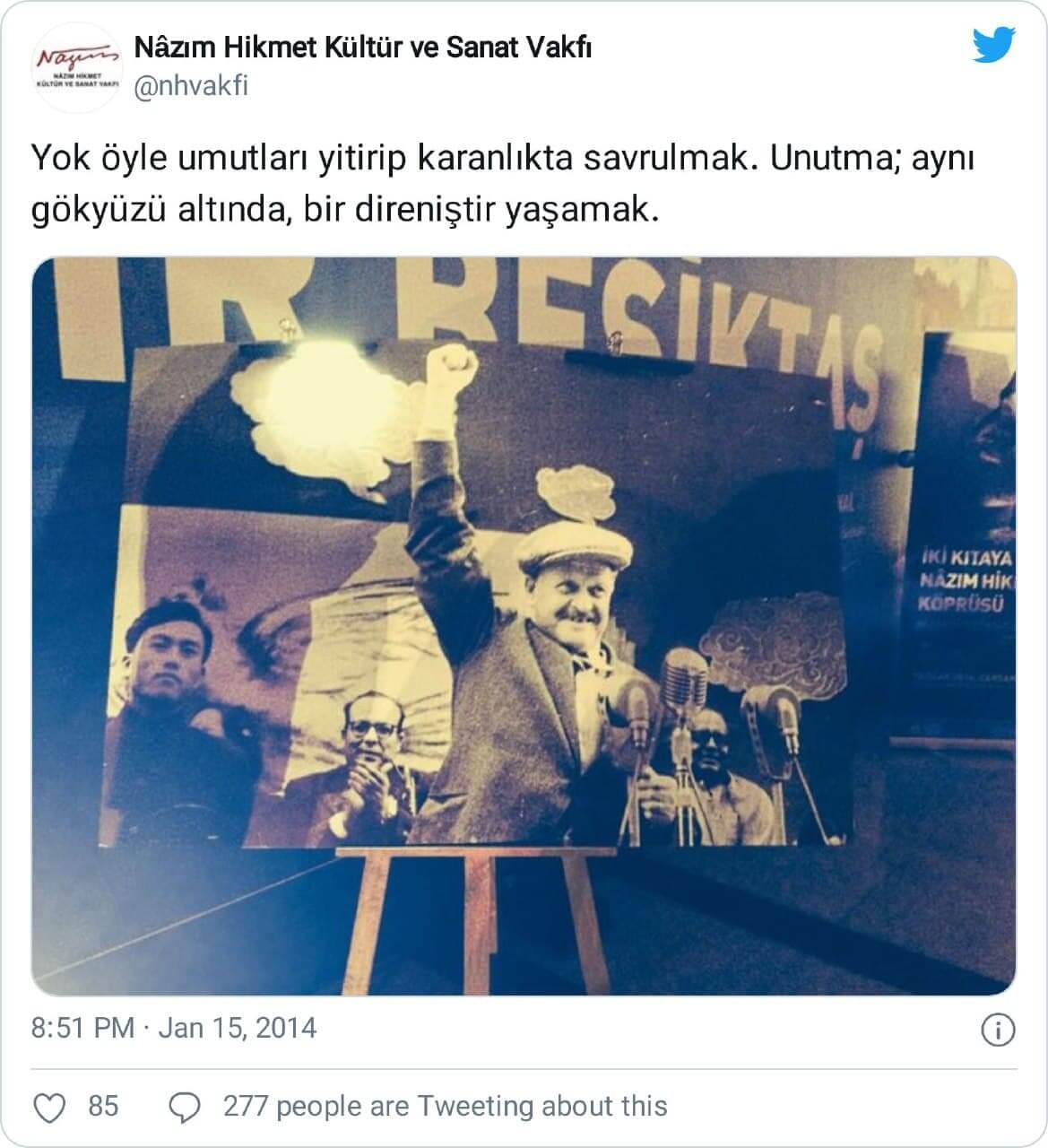 Tüm sosyal medya kullanıcılara nazaran daha dikkatli ve hassas davranmasını beklediğimiz Nazım Hikmet Kültür Vakfı’nın da aynı yanlışlığa düştüğüne şahit oluyoruz: