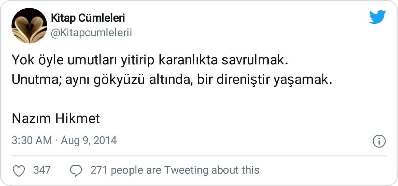 “Yok Öyle Umutları Yitirip Karanlıkta Savrulmak. Unutma Aynı Gökyüzü Altında Bir Direniştir Yaşamak” Sözünün Nâzım Hikmet’e Ait Olduğunu Zanneden Yazarlar