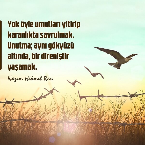 Bugün, Nâzım Hikmet’e (15 Ocak 1902 – 3 Haziran 1963) atfedilen, oldukça popüler bir sözü konu edeceğiz. Nâzım Hikmet’e ait olduğu iddiasıyla paylaşılan “Yok, öyle umutları yitirip karanlıkta savrulmak… Unutma; aynı gökyüzü altında, bir direniştir yaşamak” vecizesini inceleyeceğiz.