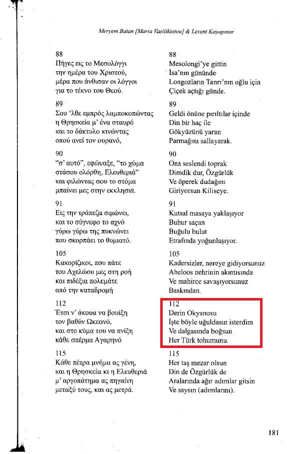 Yunan Milli Marşı’ndan Türklere yönelik katliama değinilen diğer kıtalar şöyle: