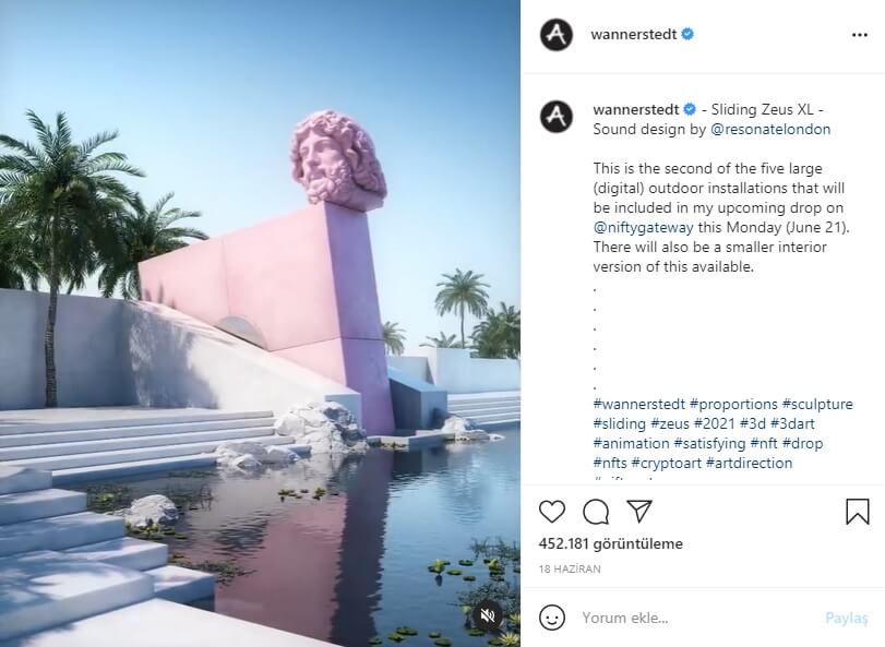 Andreas Wannerstedt, bahse konu tasarımını dijital sanat platformu Niftygateway adlı platformda “eşsiz token” (Non-Fungible Token – NFT) olarak satışa sunmuştu.