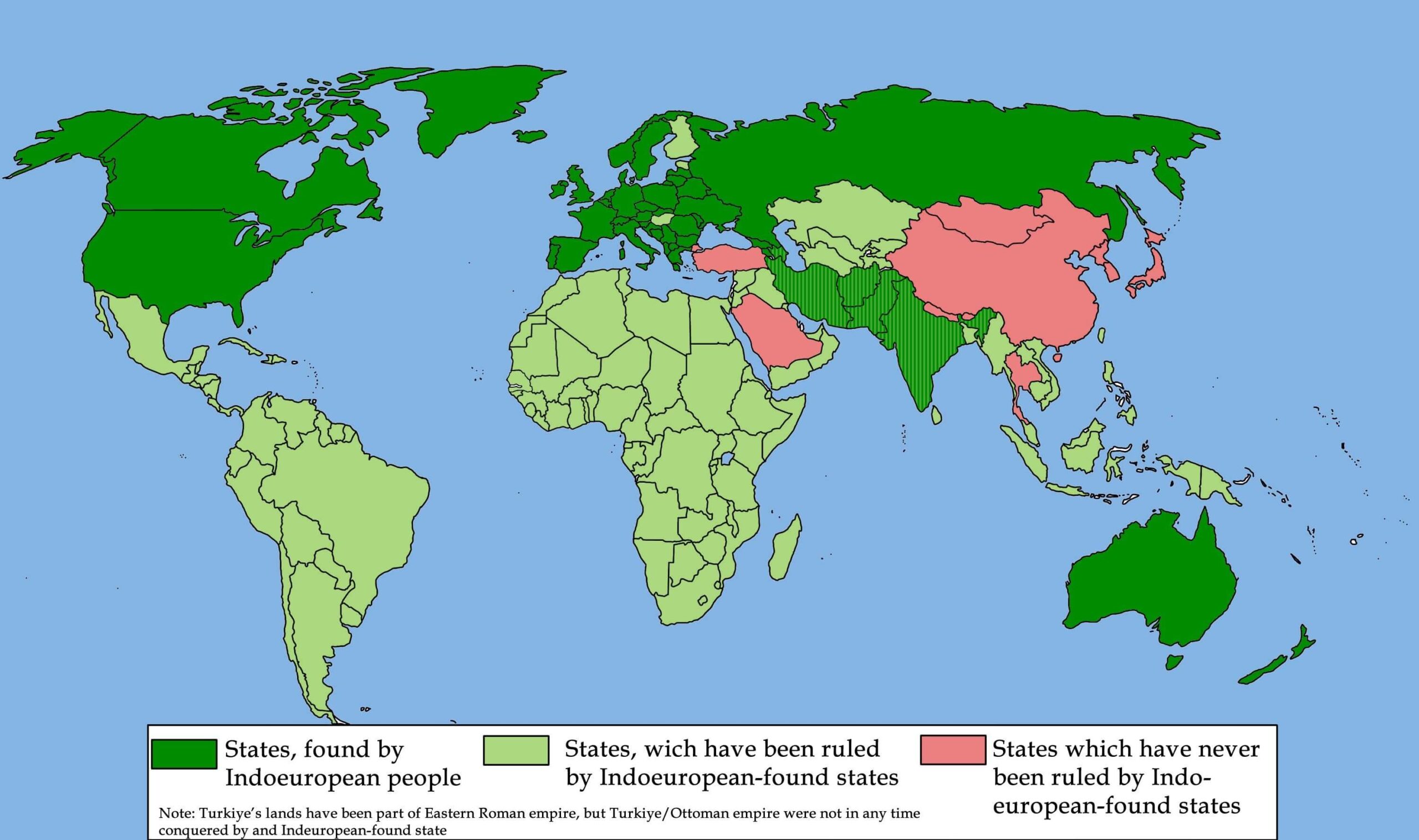 Sosyal medyada paylaşılan (birçok hata içeren) harita, tarihte hiçbir zaman Avrupalı devletler tarafından yönetil(me)miş ülkeleri değil, Hint Avrupa kökenli uluslar tarafından yönetil(eme)miş ülkeleri yansıtıyordu (Alexander Stoyanov hazırladığı haritadaki hataların tarafına aktarılmasının ardından (hâlâ bazı hatalar barındıran) revize versiyonu paylaşmıştı).