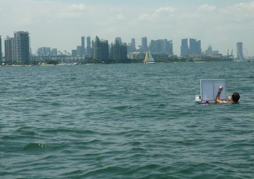 Alberto Cristini 2013 yılında Singapur’da ve San Francisco’da denizde yüzerken resim yaparken şöyle görüntülenmişti: