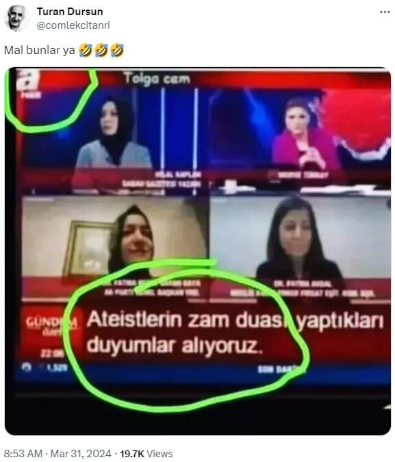 Enflasyonun etkisini daha yoğun şekilde hissettirmeye başladığı, halkın alım gücünün erimeye devam ettiği -genişleyici para ve maliye politikaları ile absürt düşük faiz deneyi yerine suçlanacak günah keçilerinin arandığı- günümüzde, “ateistlerin zam duası yaptığı” iddiasıyla bir montaj TV yayın görüntüsü sosyal medya platformlarında yeniden dolaşıma girdi.