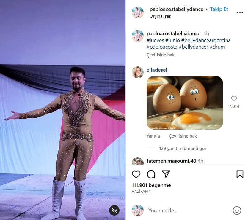 Videoda oryantal figürler sergileyen erkek Volodimir Zelensky değil, Pablo Acosta adlı Arjantinli dansçı.
