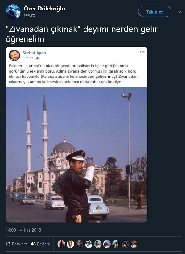Polis sabrını taşıran şoförlere buradan; “- Bak beni zıvanadan çıkarma ! Gelmiyim oraya ! ” diyerek tatlı sert uyarırdı. “ Zıvanadan çıkmak ” deyimi işte böyle ilginç bir uygulama ile ortaya çıkmış… Ve hayatımıza girmiştir.