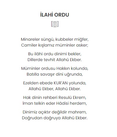 “İlahi Ordu” başlıklı şiirin tamamı şu şekilde:
