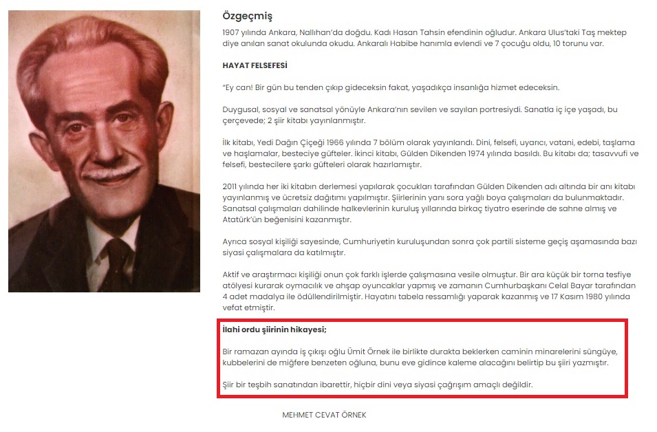 Mehmet Cevat Örnek’in “İlahi Ordu” adlı şiirini yazış hikâyesi şöyle aktarılmaktadır: