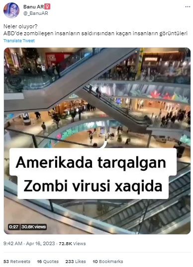 Banu AR♀ (@_BanuAR): “Neler oluyor? ABD’de zombileşen insanların saldırısından kaçan insanların görüntüleri”
